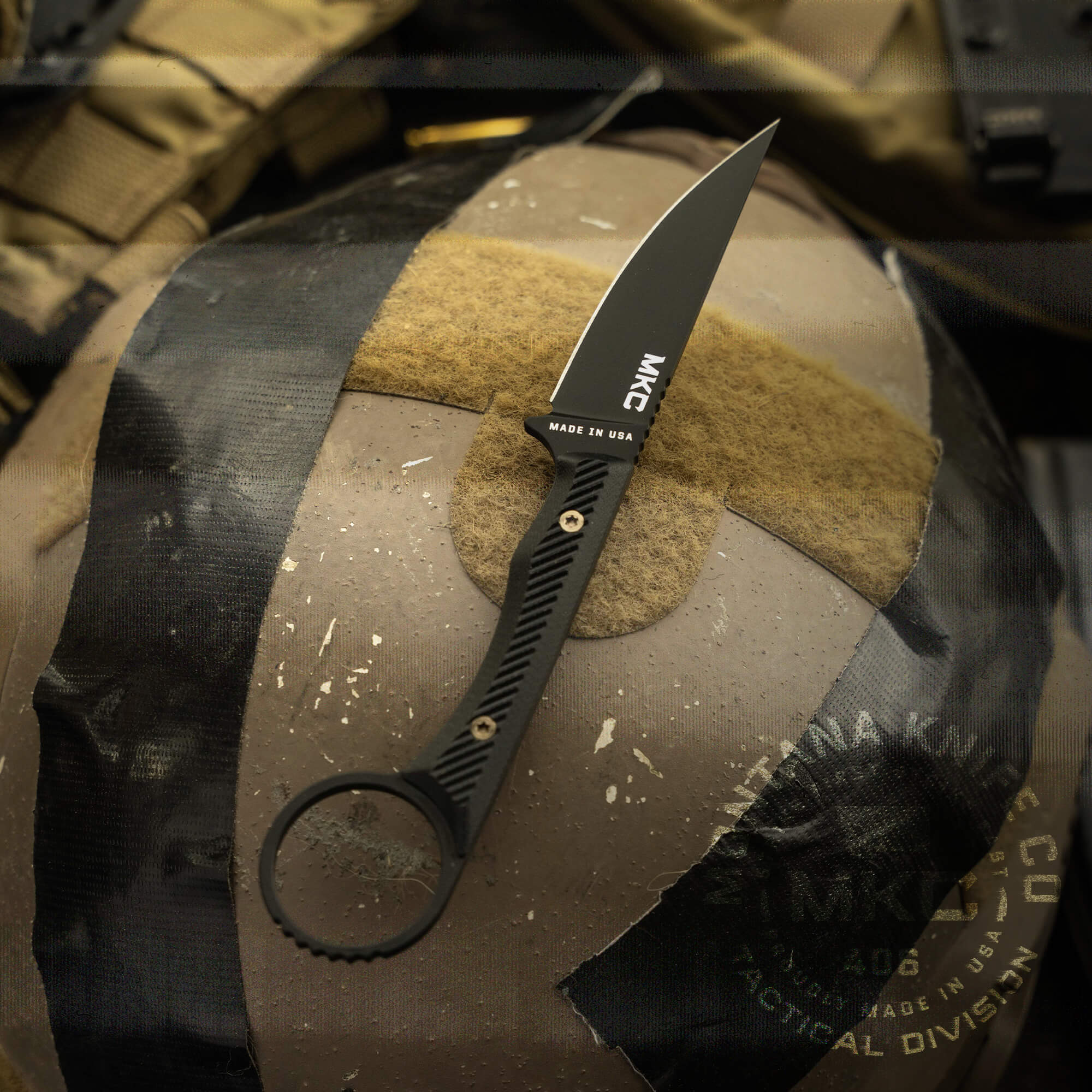 More than just eye-catching, this ring locks the blade into a can’t-fail reverse grip when deployed. Your hand is automatically guided into the perfect position for applying maximum percussive force while preventing dislodging, even when slick during wet work.